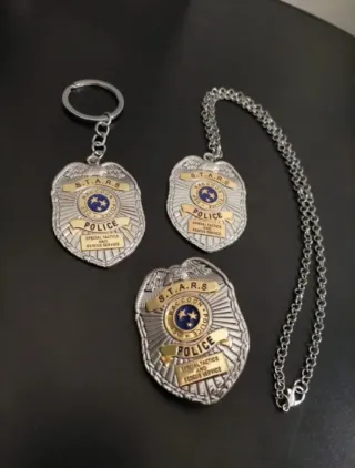 Set de 3 placas del Grupo Táctico S.T.A.R.S. de la Policía de Raccoon City, inspiradas en Resident Evil. - Incluye 1 Colgante, 1 Llavero y 1 Pin - Nuevas a estrenar