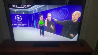 Televisor Samsung en acabado negro y azul. - Diseño moderno y elegante. - Pantalla de alta definición.