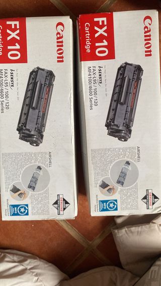 Cartucho de tóner Canon FX-10 para impresoras y faxes. - Modelo: FX-10 - Tipo: Cartucho de tóner - Color: Negro - Compatible con i-SENSYS FAX-L95/100/120 y MF4100/4600 Series. Estan sin abirir y nunca tocados me los compre pero no son para mi inpresora 30 euros cada uno