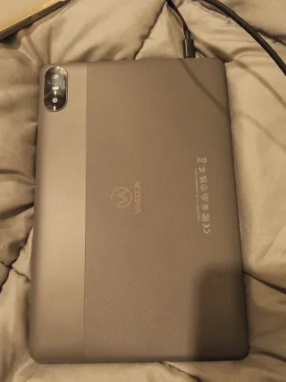 Tablet en buen estado, con un diseño elegante en tonos grises y plateados. - Cámara trasera. - Puerto de carga USB-C.