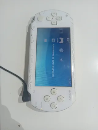 Consola portátil PSP de Sony en color blanco. Ideal para llevar tus juegos a todas partes Funciona todo perfecto el umd funciona ,se pueden poner juegos en la tarjeta . El jostik tiene drif pero tengo el recambio nuevo para quien quiera repararla ,la tapa de la 🔋 no ajusta bien . Sin cargador NO ACEPTO DEVOLUCIONES - Diseño ergonómico. - Pantalla brillante.
