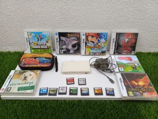 Consola portátil Nintendo DSi en color negro. En muy buen estado y lista para jugar con un montón de juegos y más juegos que puedes ver en las fotos . Se entrega SIN CARGADOR pero con la 🔋 a tope lista para jugar el cargador se puede comprar en AliExpress por 3,49 La doy revisada y con 🔋 el lápiz es de color azul no es el original . NO ACEPTO DEVOLUCIONES