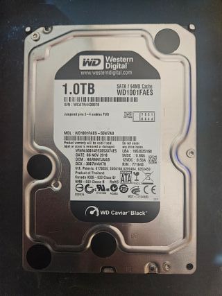 Disco duro interno de 1TB de la línea Caviar Black. Western Digital WD1001FAES 1TB 7200Rpm 64Mb Sata II 3.5" Zoll Black - Capacidad: 1TB - Interfaz: SATA - Caché: 64MB - Modelo: WD1001FAES - Fabricado en Tailandia - Fecha de fabricación: Noviembre 2010