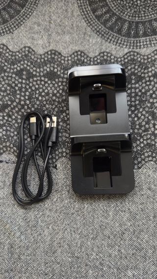 Base de carga doble para mandos de PS4. *** Nuevo! lo compré y resulta que juego con un mando gamer y es con entrada Tipo C. (última imagen) - Diseño elegante en color negro. - Compatible con mandos de PS4 Slim y Pro. - Indicadores LED para estado de carga.