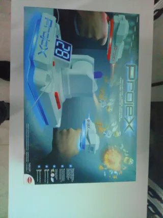Proyector de juegos arcade Projex de Bizak. Permite proyectar juegos de estilo arcade. - Diseño moderno y llamativo. - Incluye certificado de autenticidad Bizak. Sólo tiene la lamina azul de juego, la roja no. De hay si precio