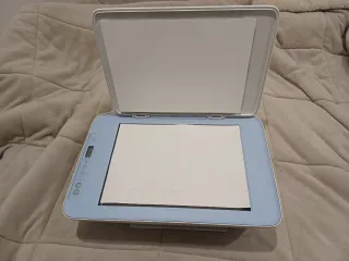 Impresora HP DeskJet en color blanco y azul. Incluye un cartucho de color, casi nueva muy poco uso - Diseño compacto y moderno. - Ideal para el hogar.