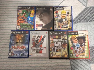 Se vende Pack de 7 videojuegos para PlayStation 2. Los juegos son: - Las Crónicas de Narnia: El León, la Bruja y el Armario -Tekken Tag Tournament - Buzz: Hollywood - Buzz: El concurso de deportes - Grand Theft Auto: San Andreas - Metal Gear Solid 2: Sons of Liberty (Platinum) - Monster Rumble (Precio negociable)