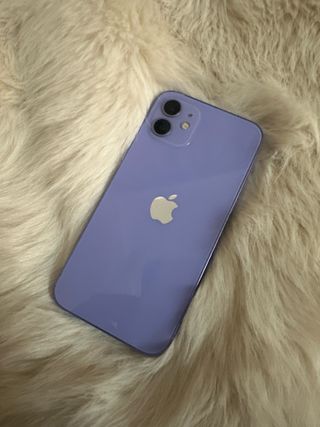 Teléfono móvil iPhone 12 con acabado en color morado. Ninguna pieza cambiada todo original su bateria sigue al 100 desde q se compro más información por pri . - salud de bateria 100% - Capacidad de almacenamiento de 64 GB.