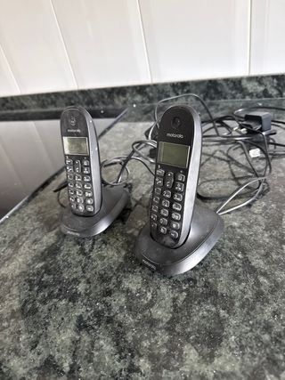 Se venden dos teléfonos inalámbricos Motorola en color negro. Son ideales para tener en casa o en la oficina. - Incluye dos bases de carga. - Diseño moderno y funcional.