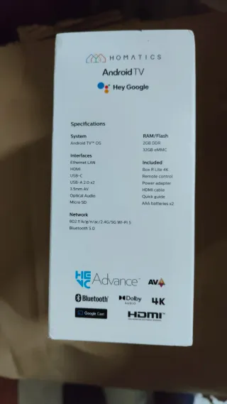 Disfruta de tus contenidos favoritos con este Android TV. - Modelo: Box R Lite 4K - Sistema operativo: Android TV 12 - Incluye mando a distancia HOMATICS Box R Lite 4K TV Box Androidtv 12 Certificado Google y Netflix Amlogic S905Y4 Wifi BT5.0 2GB 32GB Soporte Dolby Atmos