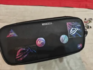 Funda para ROG Ally en excelente estado, con muy poco uso. - Diseño negro. - Adhesivos temáticos de ROG.