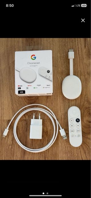 Disfruta de tus contenidos favoritos en alta definición con este Chromecast. - Compatible con resolución 4K. - Incluye mando a distancia con Google TV. - Cable de alimentación y cargador. - Todos los elementos originales. - Acceso a aplicaciones como YouTube, Netflix, Prime Video, Spotify, Disney+ y Google Photos.