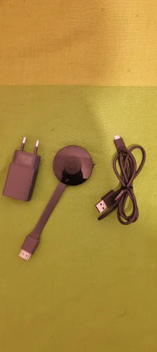 Descripción Vendo Google Chromecast de primera generación, ideal para convertir cualquier TV con entrada HDMI en una Smart TV. Compatible con Netflix, YouTube, Spotify, HBO, Disney+, Prime Video y muchas más apps de streaming. Características principales: Se conecta por HDMI a tu TV y se alimenta por USB (cable y cargador incluidos) Compatible con Android, iOS, Windows y Mac Reproduce contenido en streaming directamente desde el móvil, tablet o portátil Diseño compacto y minimalista Funciona ideal para segundas residencias, habitaciones o para quien quiere iniciarse en el mundo del streaming sin gastar mucho. Sin caja origi