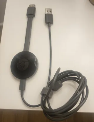 Google Chromecast 2ª generación (modelo NC2-6A5) en muy buen estado y totalmente funcional. Permite reproducir contenido en streaming desde el móvil, tablet u ordenador directamente en la TV mediante Wi-Fi (YouTube, Netflix, Prime Video, Spotify, etc.). Soporta resolución hasta Full HD 1080p. Con cable HDMI integrado y alimentación por USB o adaptador de corriente. Ideal para convertir cualquier TV en Smart TV de forma sencilla.
