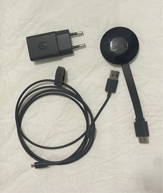 Dispositivo de streaming Google Chromecast modelo H2G2-42. Apenas sin uso, se entrega en su embalaje original con todos los accesorios (enchufe, cargador USB y extensor HDMI). Haz 'inteligente' tu televisión de siempre. Entrega en mano en Vigo. Envíos por Wallapop. Precio fijo.