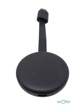 Dispositivo de streaming Chromecast en color negro. No dispongo de la caja - Diseño redondo y compacto. - Incluye cable de conexión.