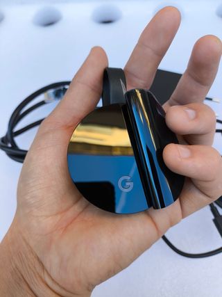 Chromecast Ultra de Google para streaming en 4K. - Diseño circular en color negro. - Incluye cable y adaptador de corriente. Permite si se desea conexión con rj45 para máxima calidad de imagen
