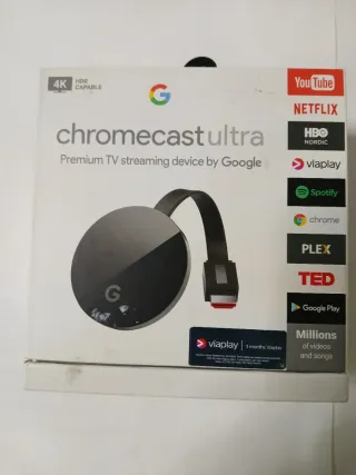 Dispositivo de streaming de TV premium. Funciona perfectamente. - Capaz de 4K HDR. - Incluye aplicaciones como YouTube, Netflix, HBO Nordic, Spotify, Chrome, Plex, TED y Google Play.