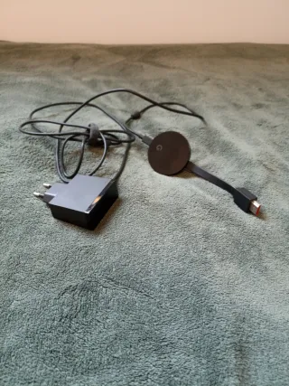 Funciona perfectamente, el cable con transformador es el original que viene con el Chromecast. Tiene Conexión HDMI y conexión inalámbrica al Wi-Fi para manejarlo usando un móvil Puedes poner todas las plataformas de Streaming (Netflix, PrimeVideo, HBO, Disney, Filmin...) y YouTube y mucho más!