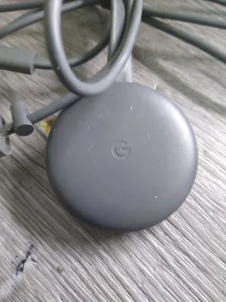 Dispositivo de smart TV de Google. - Diseño redondo y compacto. - Cable integrado para conexión.