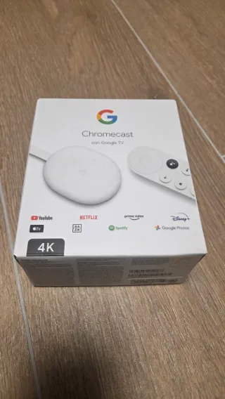 Disfruta de tus contenidos favoritos en alta definición con este Google Chromecast. - Compatible con resolución 4K. - Incluye mando a distancia. - Acceso a apps como YouTube, Netflix, Disney+, Spotify y más.