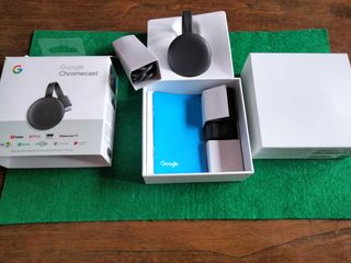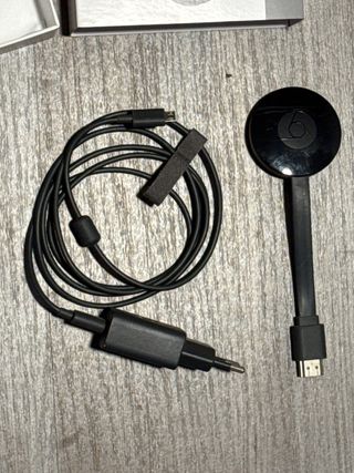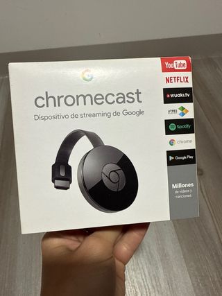 Dispositivo de streaming de Google Chromecast. Permite disfrutar de contenido en tu televisión. - Diseño compacto y moderno. - Compatible con YouTube, Netflix, Spotify y más.