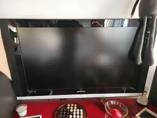 Televisión Samsung con un diseño moderno y elegante. - Marco en color negro. - Base y detalles en color plateado. Necesita Chromecast. Muy utilizada, funciona pero ha dado casi todo. Medidas 110 x 66.