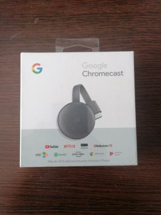 Dispositivo de streaming de Google. - Incluye Chromecast y adaptador de corriente. - Diseño redondo y compacto.
