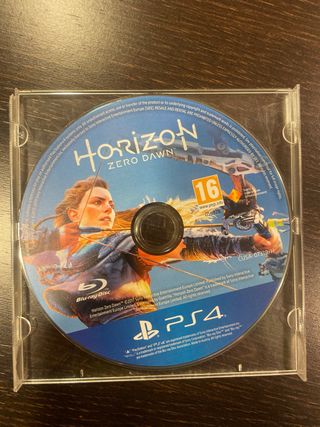 Disco del videojuego Horizon Zero Dawn para PlayStation 4. - Formato Blu-ray Disc. - Clasificación PEGI 16. - Desarrollado por Guerrilla.