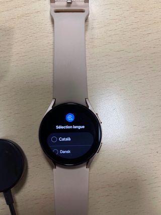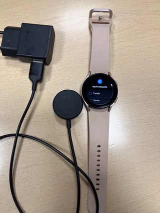 Reloj inteligente Samsung Galaxy Watch 4 en color rosa. - Diseño elegante y moderno. - Correa ajustable para mayor comodidad.con cargador completo
