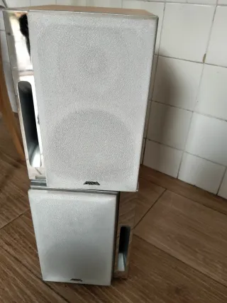 Altavoces compactos para PC con un diseño moderno y llamativo. - Conexión USB o Jack 3.5 mm. - Controlador del sonido en cable No se han usado prácticamente