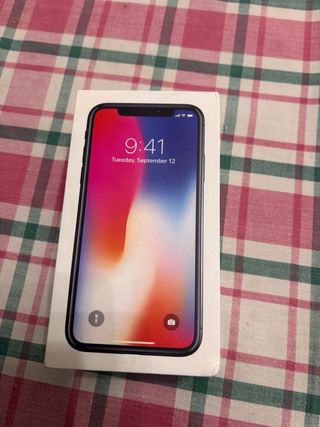 Teléfono móvil iPhone X de Apple. - Pantalla de 5.8 pulgadas. - Cámara trasera de 12 MP. - Cámara frontal de 7 MP. - Capacidad de almacenamiento de 64 GB. No se el estado actual