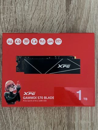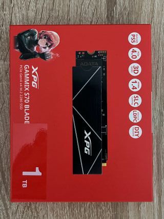 SSD NVMe Adata XPG Gammix S70 Blade de 1TB, completamente nuevo y con caja sellada. - Formato M.2 2280 con interfaz PCIe Gen 4.0 x4 (NVMe 1.4). - Velocidades: hasta 7.400 MB/s lectura y 6.800 MB/s escritura. - Disipador térmico de aluminio incluido (instalable). - Compatible con PCs y consolas PS5. - Fiabilidad y rendimiento para gaming, edición o uso profesional. - Caja original precintada, nunca abierto.