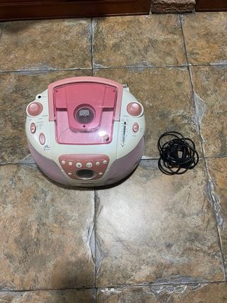 Radio CD portátil con un diseño moderno y funcional. - Reproduce CDs y sintoniza la radio. - Altavoces integrados para un sonido claro. - Controles de fácil acceso en la parte superior.