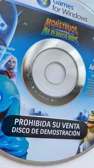 Disco de demostración del videojuego Monstruos contra Alienígenas para PC. - Juego para Windows. - Prohibida su venta impreso en el disco.