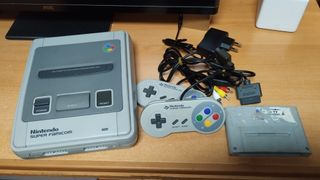 Consola Super Famicom, lista para jugar. Incluye dos mandos , cable de video y fuente 220v y un juego que es Slam Dunk Yonkyo Taiketsu!!. la consola esta en buen estado - Dos mandos de control. - Juego Slam Dunk Yonkyo Taiketsu!! - Cable de video y adaptador de 220v el juego esta con la pegatina arrancada y en estado regular, pero funciona correctamente