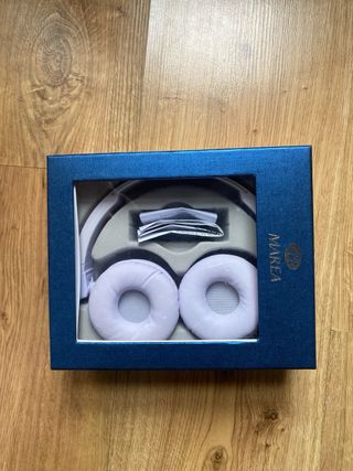 Cascos inalámbricos Marea en color blanco y morado. - Diseño moderno y ligero. - Almohadillas suaves para mayor comodidad.