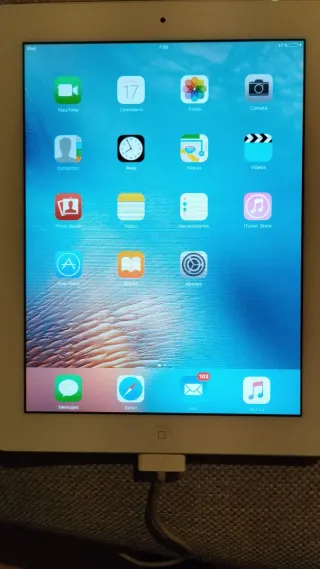 Tablet Apple iPad 2 en color blanco y plata. - Pantalla de 9.7 pulgadas. - Cámara frontal y trasera. - Conexión Wi-Fi. - Almacenamiento 12GB