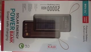 Batería externa solar de alta capacidad. - Capacidad de 20000 mAh. - Carga rápida. - Doble puerto USB. - Puerto Micro USB. - Celda de polímero de alta calidad.