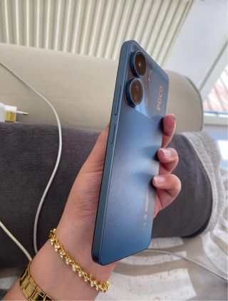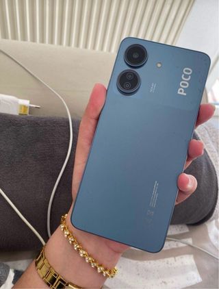 Teléfono móvil POCO C65 en color azul. - Pantalla con detalle. - Diseño moderno.