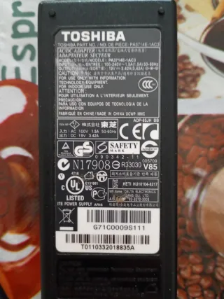 Adaptador de corriente Toshiba. - Modelo: PA3714E-1AC3 - Entrada: 100-240V~1.5A 50-60Hz - Salida: 19V 3.42A