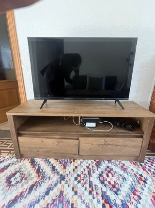 Mueble de televisión con un diseño moderno y funcional. - Acabado en madera y detalles en negro. - Amplio espacio de almacenamiento con cajones y compartimentos abiertos. - Ideal para organizar tu equipo multimedia. Se vende por separado también!