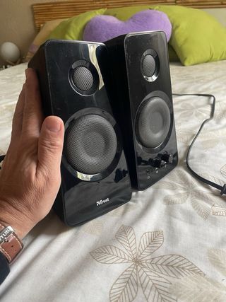 Altavoces amplificados con un diseño moderno y elegante. Funcionando perfectos 100%, ideales para , pc, portatil, tablet, movil o para la tv - Marca: Trust - Color: Negro