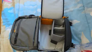 Mochila fotográfica Lowepro Slingshot. - Diseño en color gris y negro. - Compartimento acolchado para equipo fotográfico. - Correa ajustable para el hombro.
