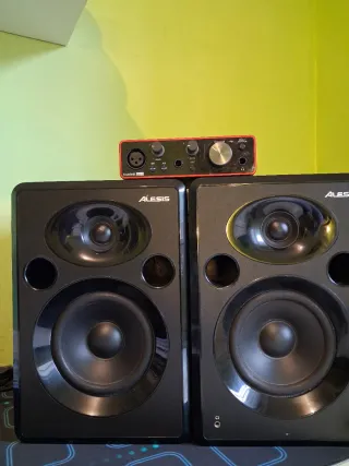 Par de monitores de estudio Alesis en color negro. - Diseño elegante y compacto. - Tweeter y woofer integrados.
