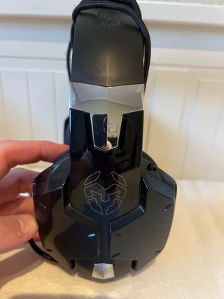 Auriculares negros para gaming, con micrófono integrado. - Diseño ergonómico para mayor comodidad. - Diadema ajustable. - Almohadillas suaves. - Cable trenzado duradero.
