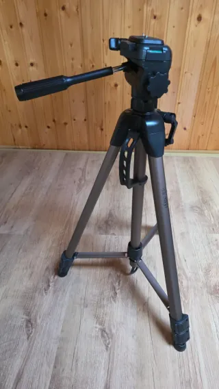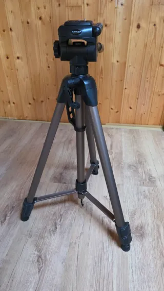 Trípode Hama Star 63 en color gris y negro. - Altura ajustable. - Mango para transporte. - Patas extensibles. - A estrenar no se ha usado nunca.