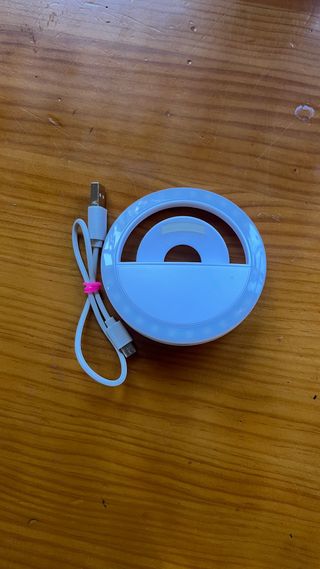 Este aro de luz es un accesorio práctico para mejorar la iluminación en tus fotos y videos. Viene con su cable cargador. - Aro de luz circular. - Incluye cable de carga USB.
