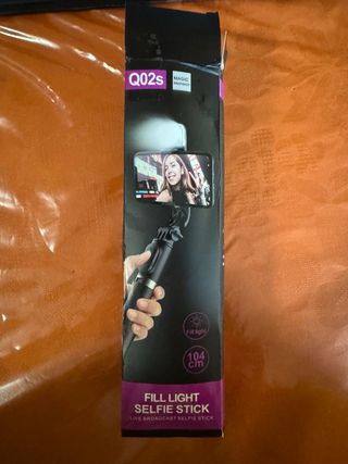 Palo de selfie modelo Q02s con luz de relleno integrada. Ideal para transmisiones en vivo y capturar fotos y videos. - Luz de relleno. - Extensible hasta 104 cm.