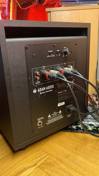 Subwoofer activo Adam T10S en color negro. - Diseño moderno y elegante. - Sonido potente y nítido. Tiene 3 meses de uso subwoofer activo de 10" Sintonizado para Adam T5V y T7V Potencia: 130 vatios Amplificador clase D Rango de frecuencia: 28 - 120 Hz (-6 dB) Frecuencia de cruce: 80Hz / 120Hz / Bypass Filtro de paso bajo ajustable 2 entradas y salidas XLR balanceadas 2 entradas y salidas RCA no balanceadas Fuente de alimentación incorporada de 115/230V Dimensiones (An. x Al. x Pr.): 318 x 390 x 413 mm Peso: 12,2 kg